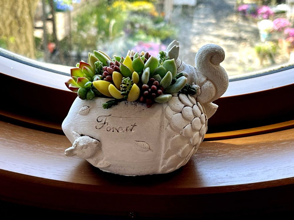 どんぐりに🐿️が可愛くて、多肉はあまり得意じゃなくて鉢に一目惚れ🤭