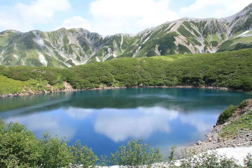 やまちゃんさん みくりが池に映り込んだ青空 山肌の緑と根雪の白のコントラスト もうどれを取っても最高のショットで 良い記念の一枚になりましたね♡