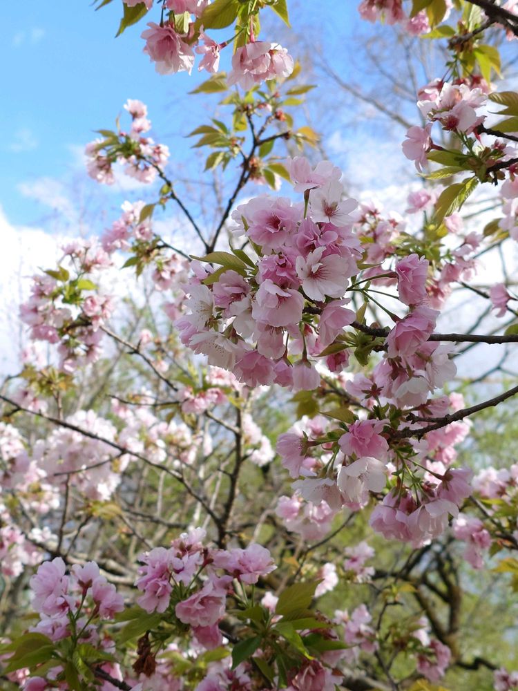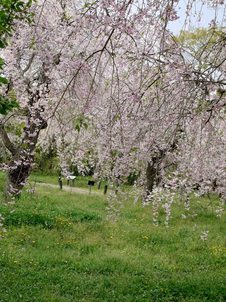 ③大好きな枝垂れ桜。緑の中に美しく咲いていました😄