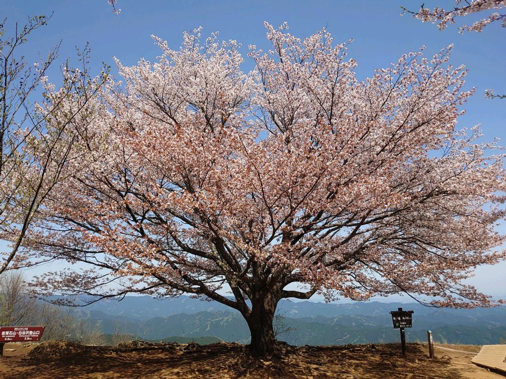 標高969m、棒ノ折山(棒ノ嶺)の山頂に咲く山桜。