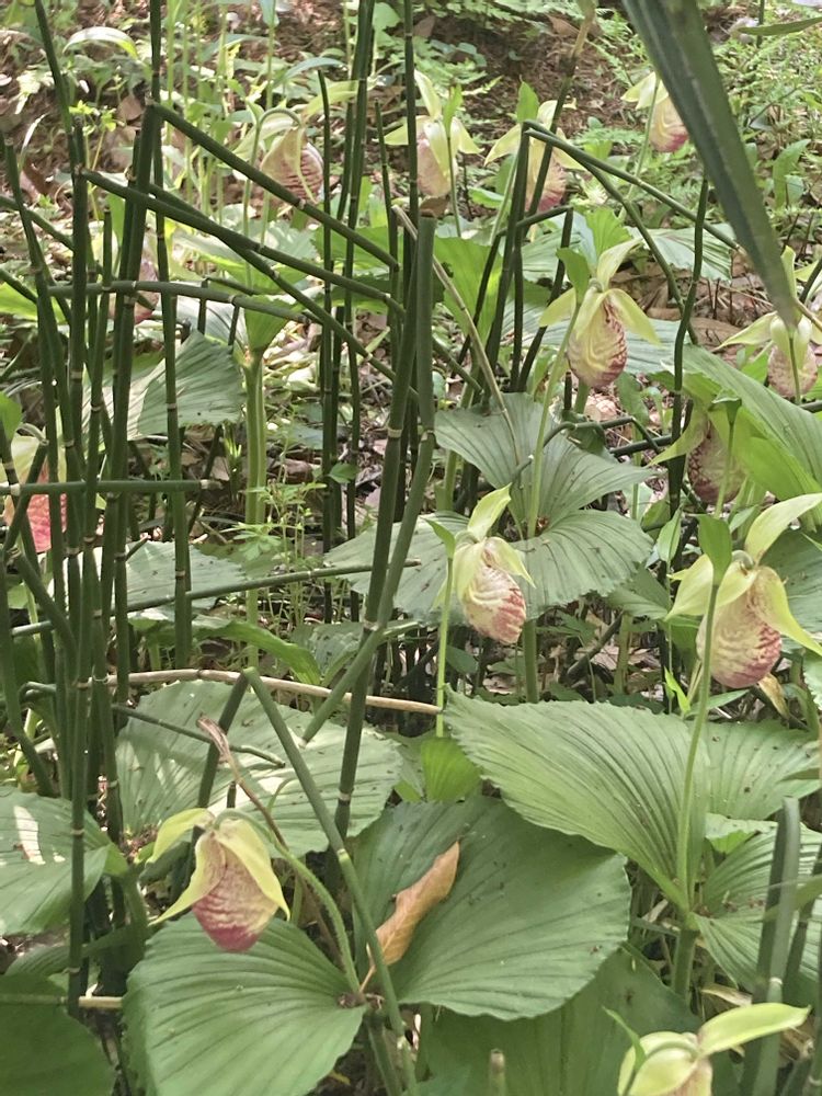 花友さんの池のそばでバイカイカリソウ、エビネ、クマガイソウ
