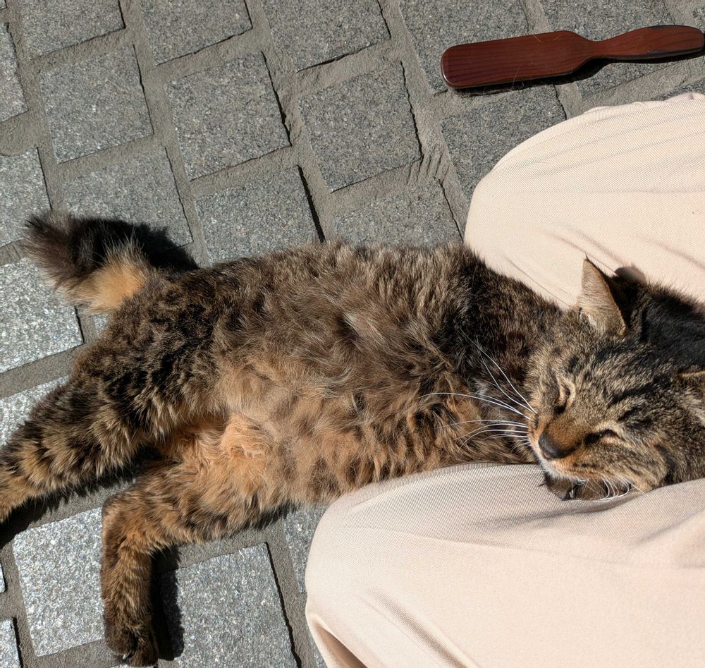 地域猫なのに警戒心のないしーちゃんなのですね😽癒されますよねえ💕