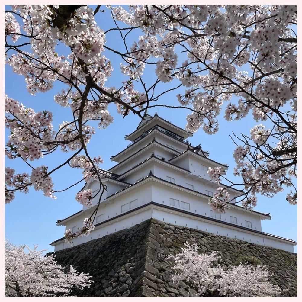 私はお城🏯を見るのが好きなんですよ〜鶴ヶ城と🌸サイコー😆👍