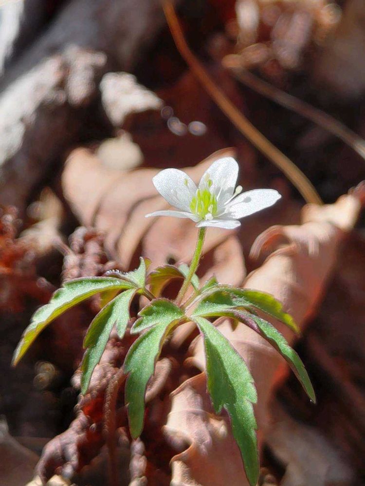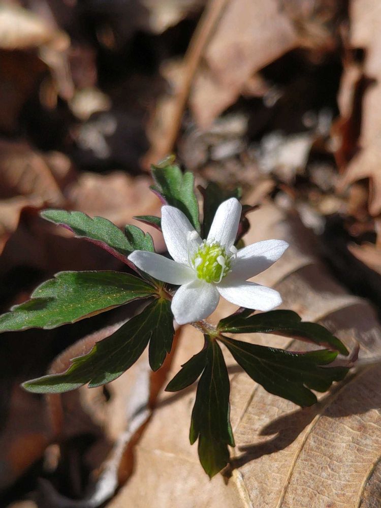 ヒメイチゲ(姫一華)…とっても小さなイチゲが厚い落ち葉の中から顔を出していました✨🤍🌿