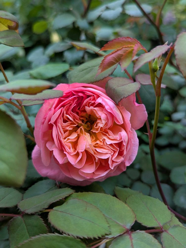 早過ぎた蕾がゆっくり咲いたので、ちょっと秋バラっぽい感じに咲きました。☺️色も変わっていくかな。いい香りは癒されますよね。