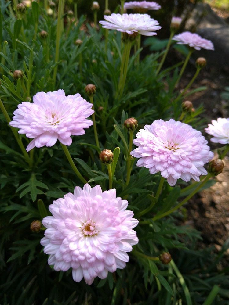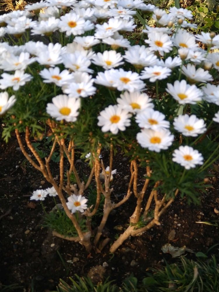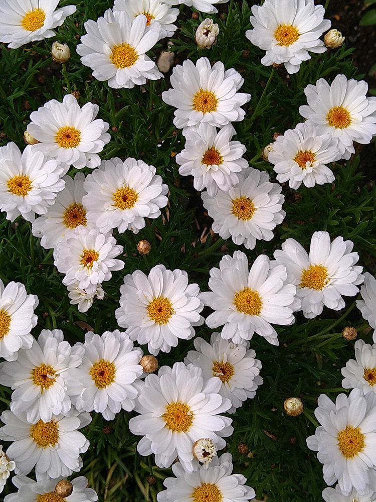 まぁるい花びらが集まってふっくら厚みのある まぁるいマーガレットの小さなクッションをたくさん咲かせてくれて見事ですね🎵🎵