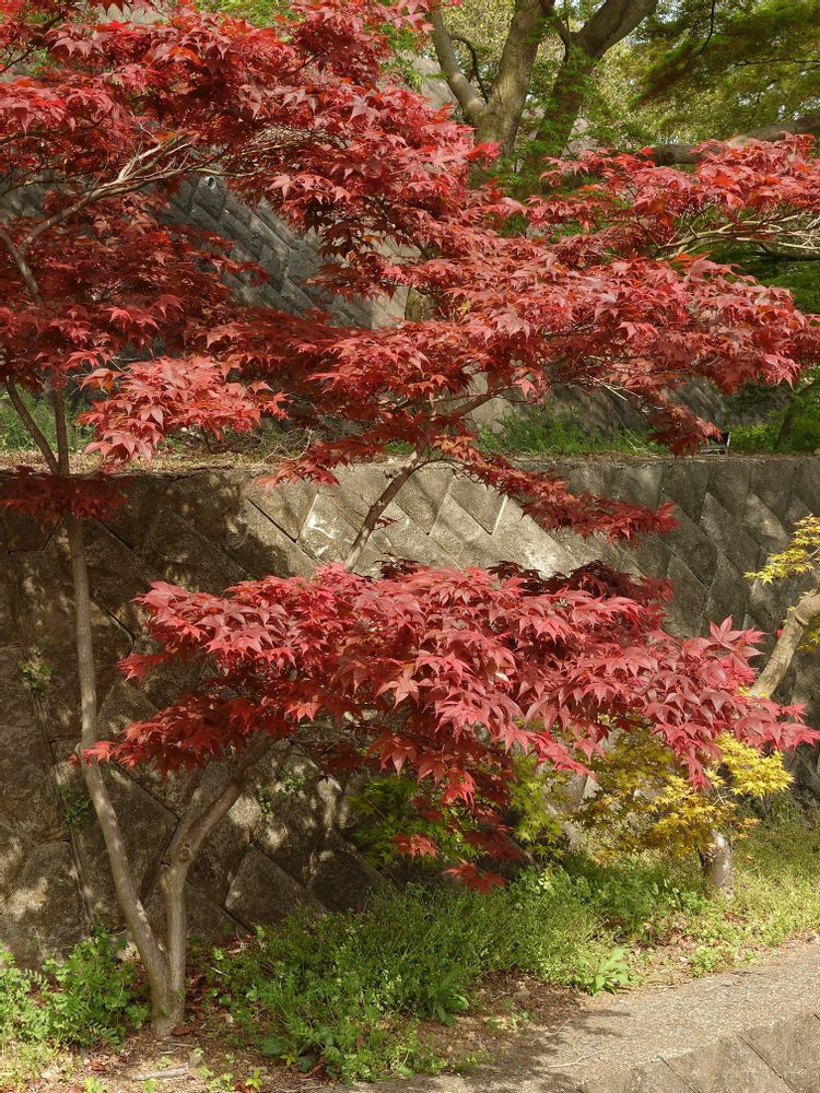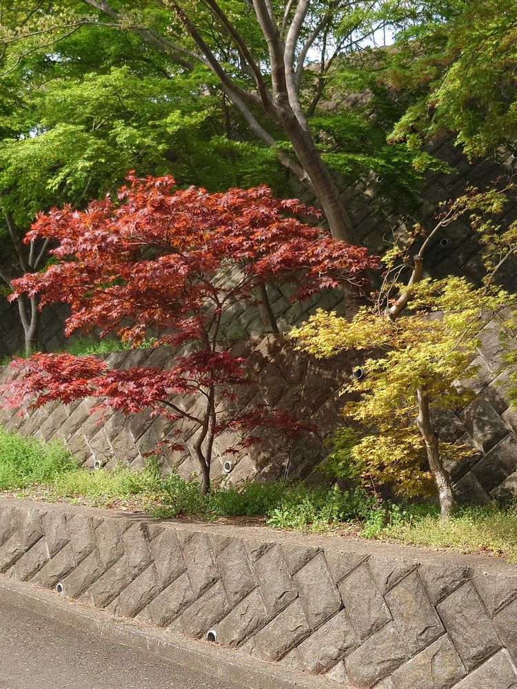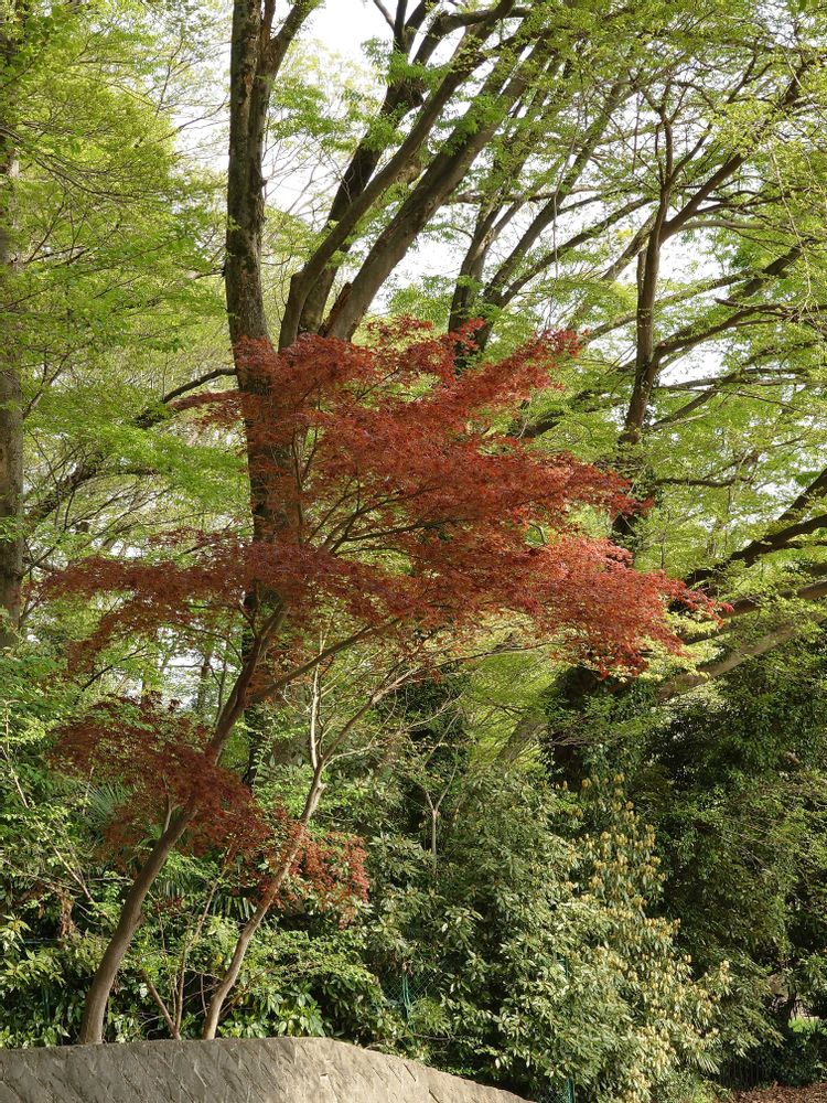 若葉に映える春紅葉👀 これは贅沢ですね🤩 若葉の色も春紅葉に負けていません🙌 ♪はるなのにーもみじーですかー🎤😀