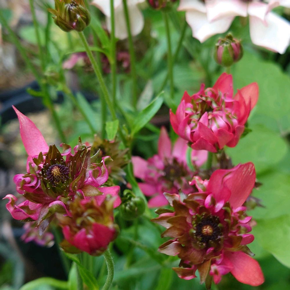 真っ赤のもじゃもじゃの花が気になって〜3年前に買った時には沢山咲いてくれてたのに〜今年は花数少な目〜来年咲くか?不安なコです〜皆さんどんな管理してるのかなぁ〜🤔