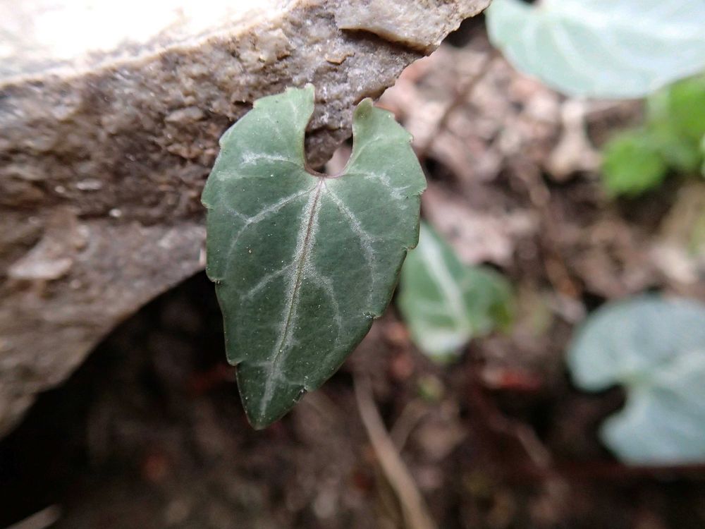 シハイスミレの葉裏が紫色であることから「紫背菫」と呼ばれていますが、斑入りのものは葉脈に沿って白斑が入るのが特徴です。