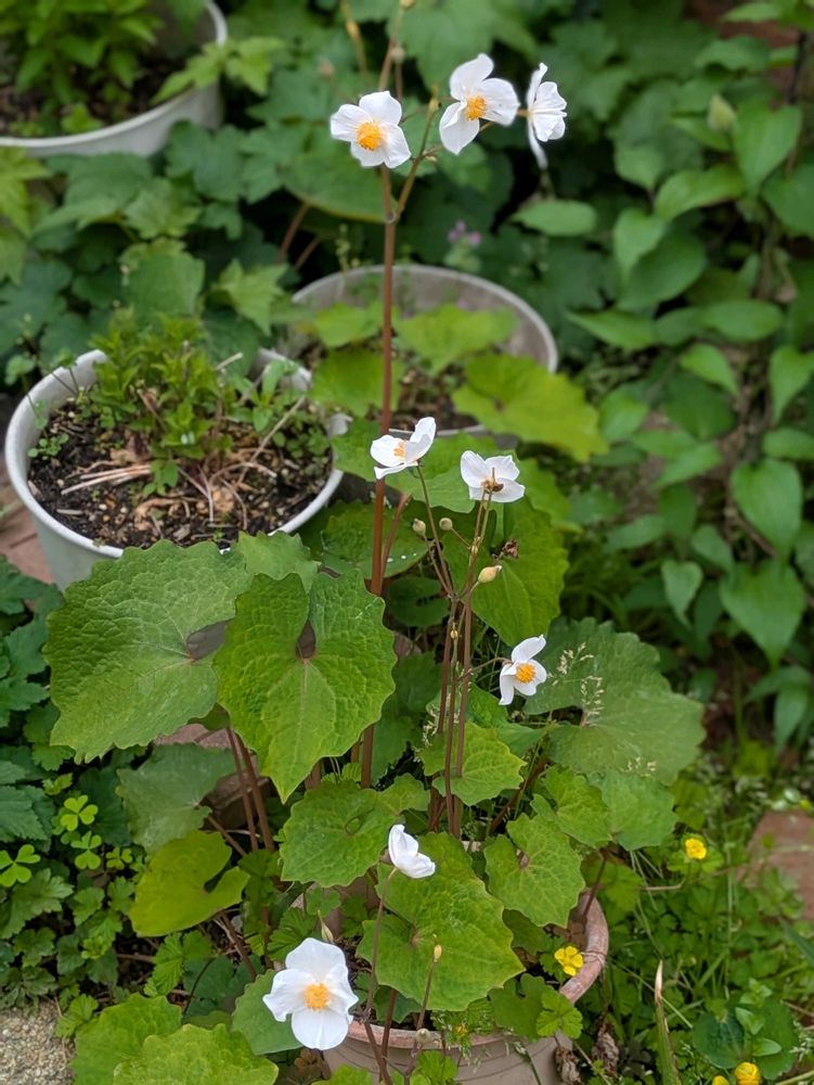 シラユキゲシ 鉢の底から根を出して、どんどん増えています。可憐な子なんだけど。