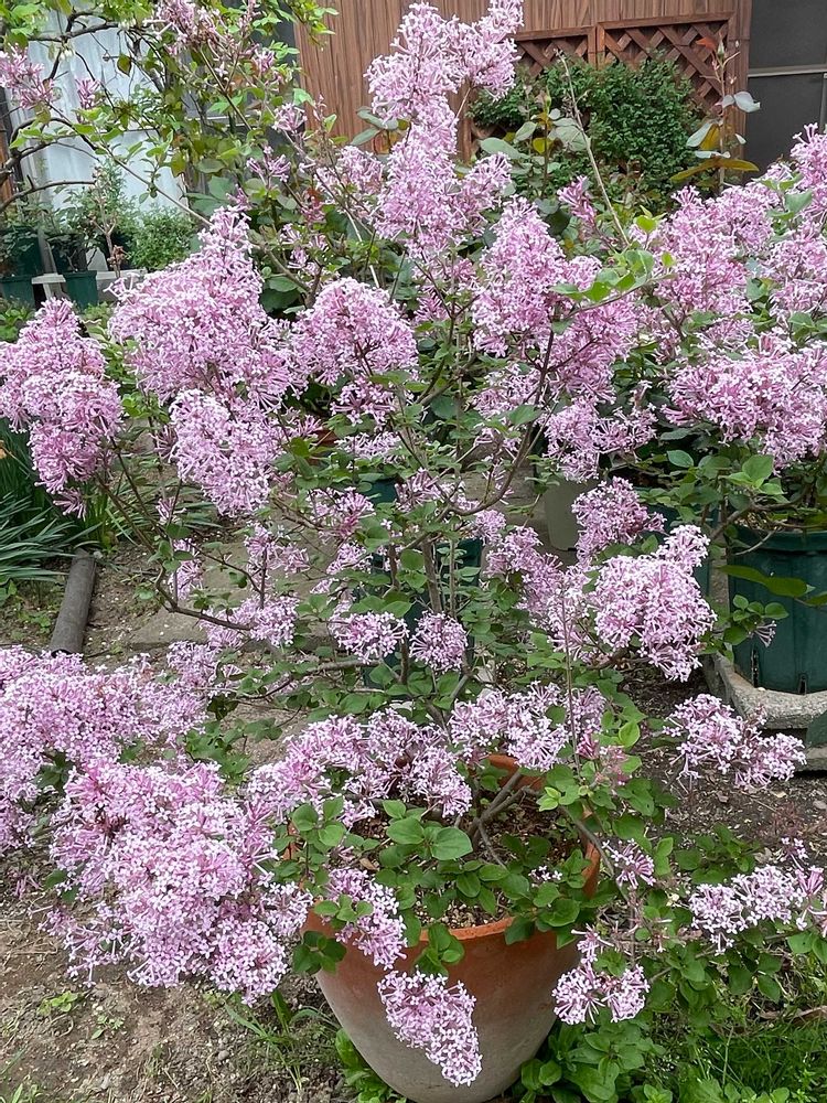 姫ライラックを育て初めて4年位(いい加減だなぁ)経ちます 今年 鉢増しをしたら 良い感じになりました 初めてこんなに咲いて めちゃくちゃ嬉しかったです💜
