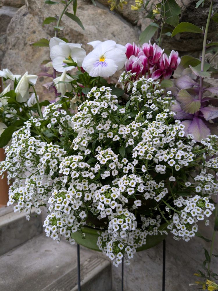 寄せ植えのアリッサムが満開に〜🈵👏😃🎶
