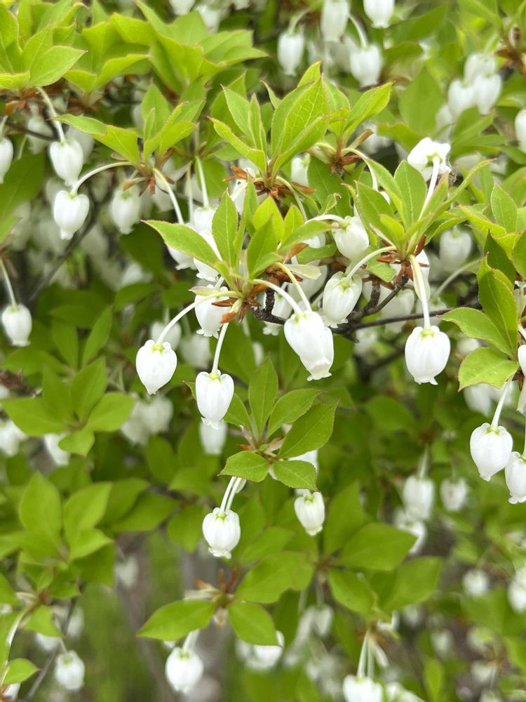新緑の中に白い鈴のような花が咲きました♪秋には真っ赤な紅葉、冬には可愛い冬芽が見られるため公園の生垣でよく見られます。