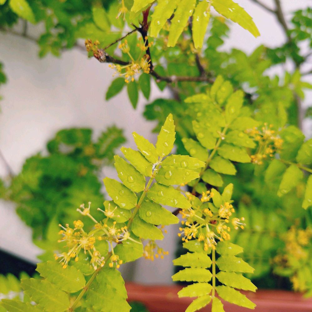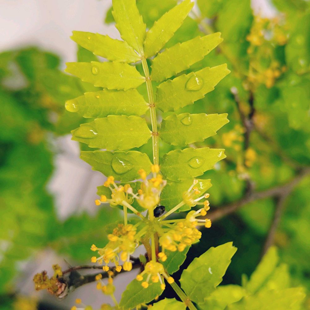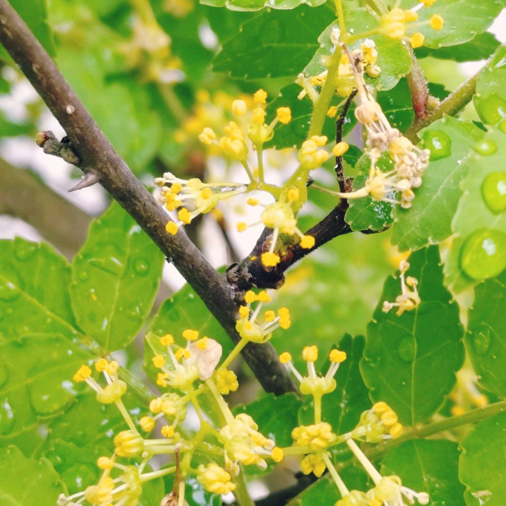 何年か前から花が咲き出したので、実が付くかと期待したのですが、葉山椒のようです😣