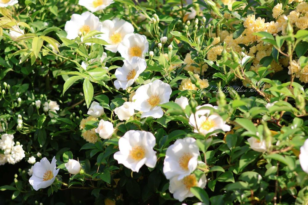 ご近所のナニワノイバラも咲き出しました。他人んちなのに嬉しい🤍