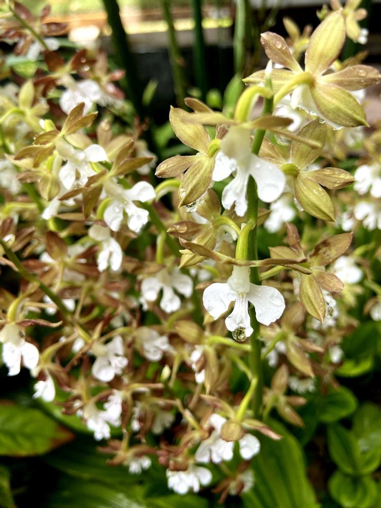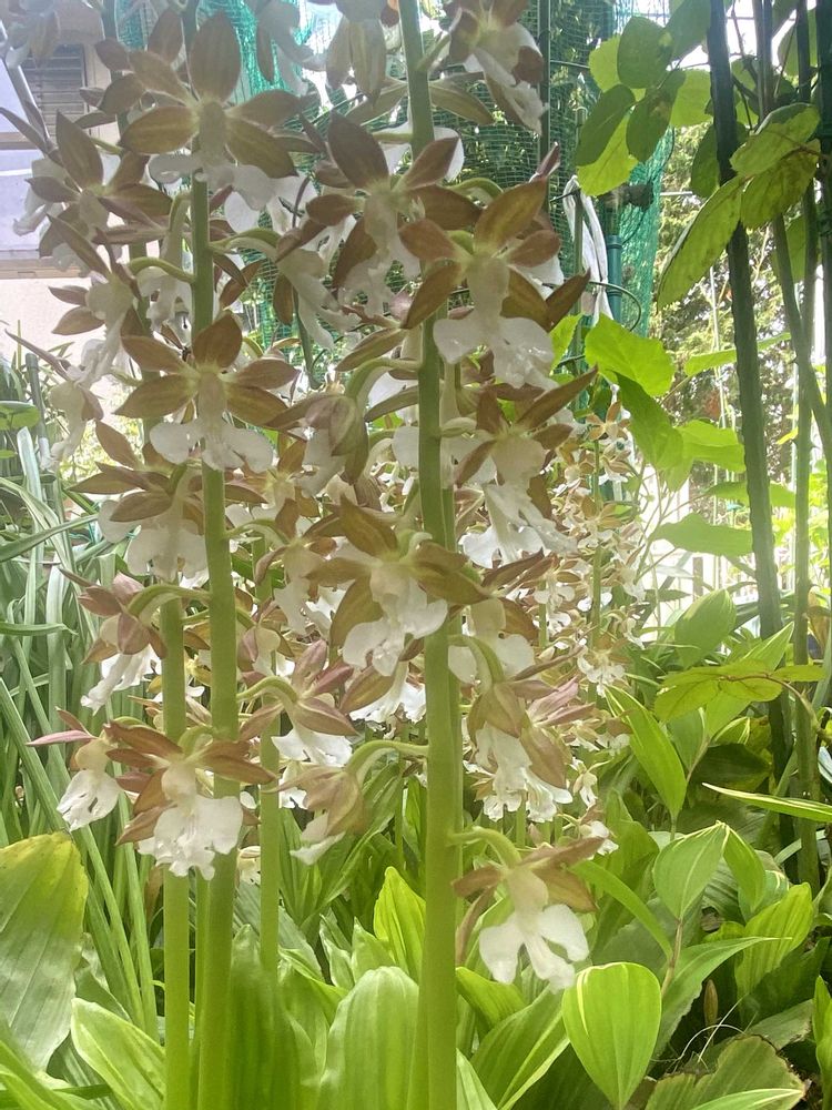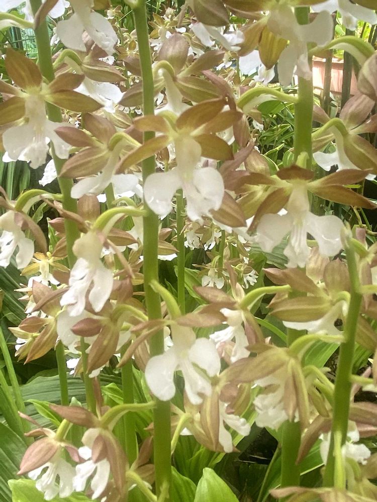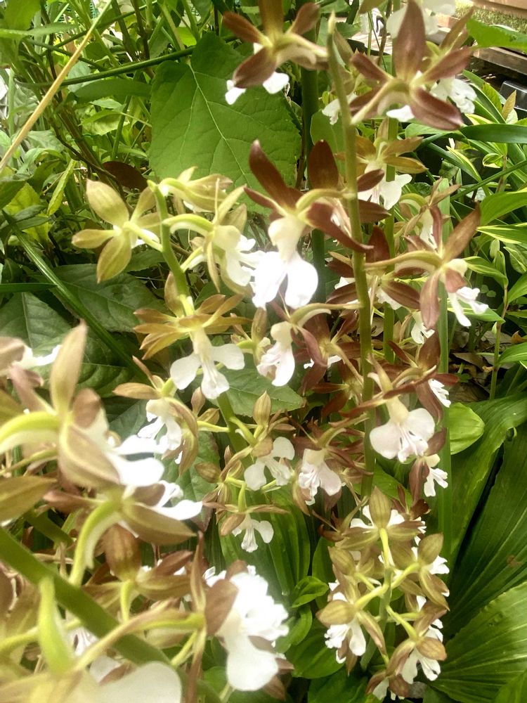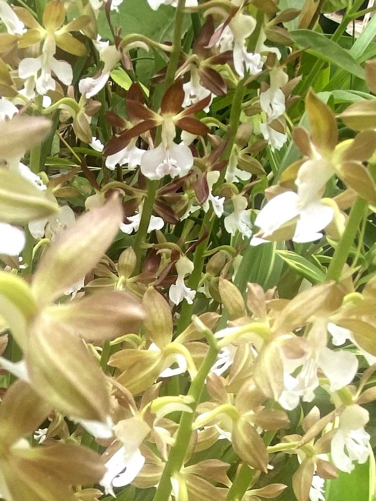 我が家の小さな庭のエビネの花が満開です🤍🤍🤍10年以上前に花好きの知人から譲ってもらって、植えっ放しなのに毎年毎年現れてくれてます。しかも増えてて、数えてみたら20本❣️メッチャ地味な子やけど素敵やわ〜💓