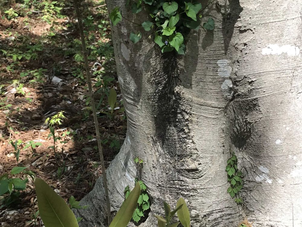 木のウロに植物がまるでフラワースタンド 近寄ればこれから咲く?スミレかな