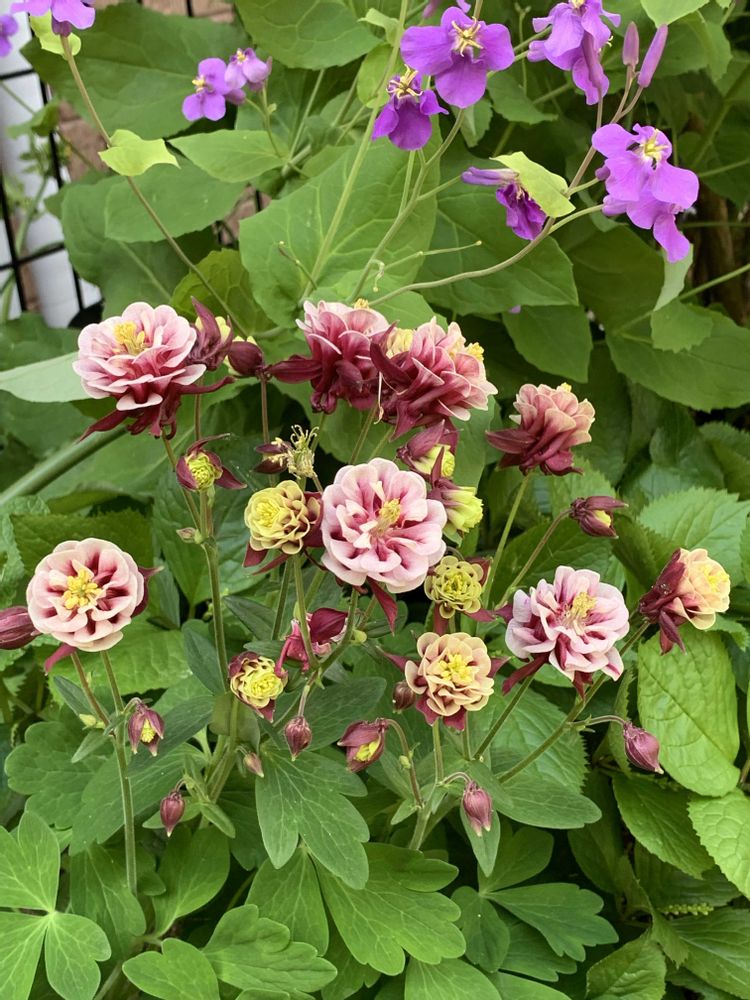 別のご近所さんから咲いてる2種のオダマキを頂きました❣️