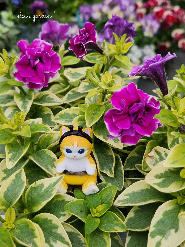 にゃんにゃん😺と斑入りコラボ♡可愛くて楽しいpicですね♡