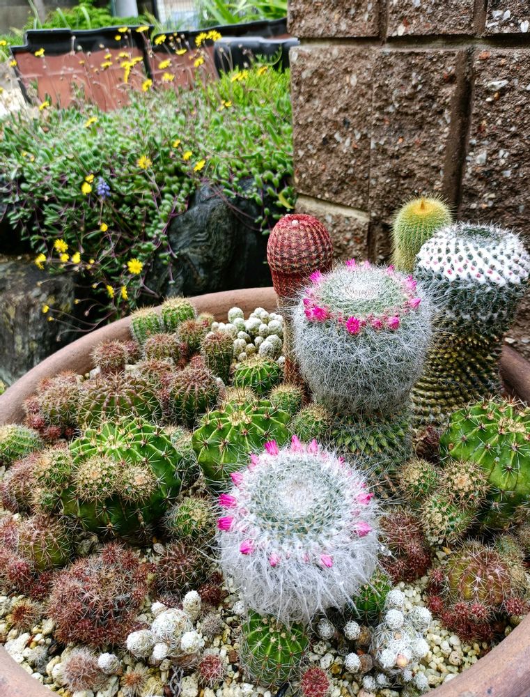 外で寄せ植えに、鉢も大きく重たく❄雪の日もそのまま外でしたが、やはりサボテン🌵太陽☀が大好きですね💕