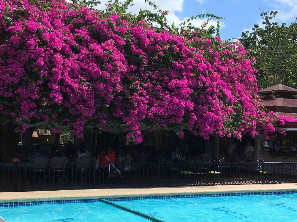 🌿フィリピン セブ島🌿オーブンカフェの屋根が、巨大なブーゲンビリア‼️😍ホテルのプールも隣に。