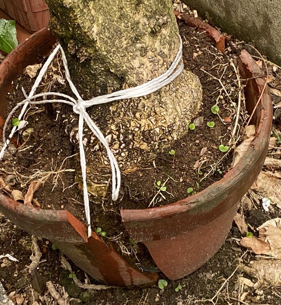 鉢植えで とうとう鉢が割れてしまった😆