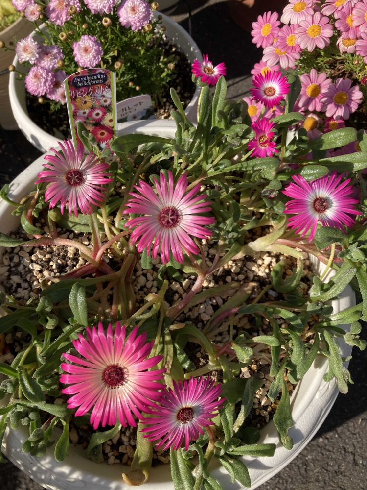 リビングストンデージーのお花の鮮やかな色が好きで毎年お迎えしてますが 葉っぱや茎がいつもヨレヨレ〜になります😅