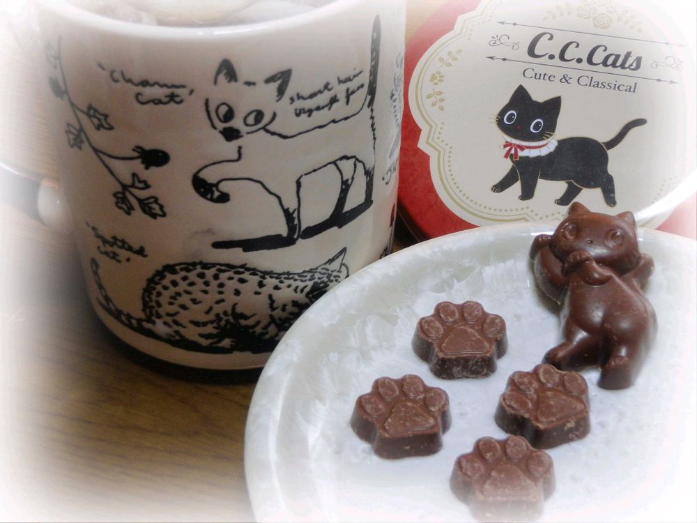 肉球型のチョコで、一匹だけニャンコ入りでした😺