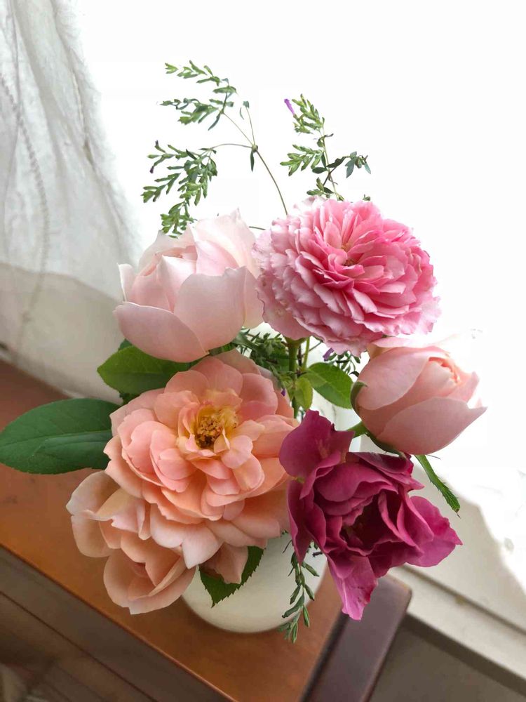 昨日夕方に切った小さな蕾たちが可愛く開きました🌹💕