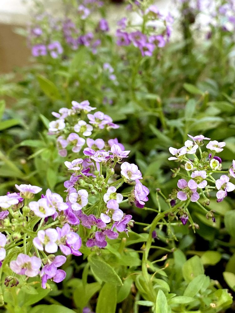 ③間違えてポキッと折ってしまった枝を花壇に挿し芽したアリッサム💜も薄紫色の小花が手毬状に可愛く咲いています💕🥰(4月22日pic)