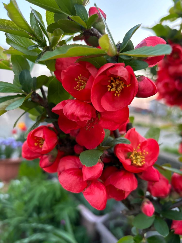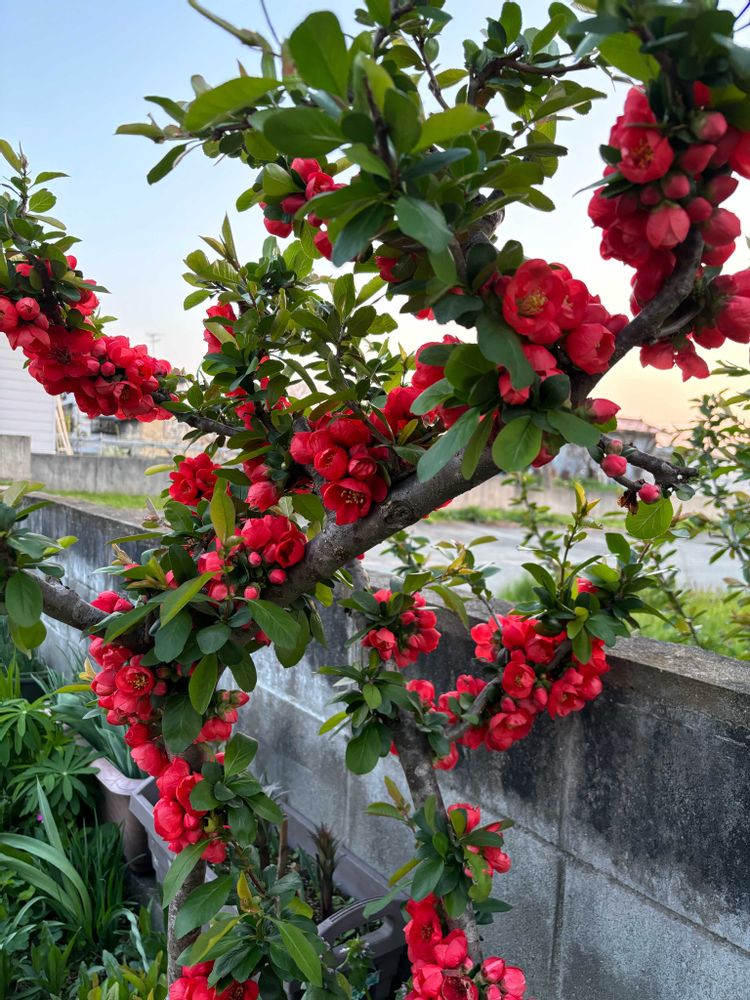 木瓜の花は真っ赤か❤️❤️❤️で綺麗だよん😍