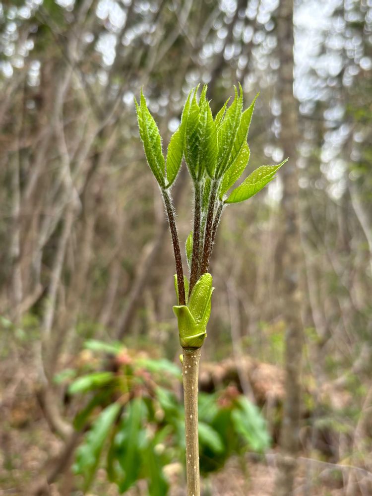 ③④ コシアブラの芽が丁度食べ頃に、一本の木から上の芽2本迄採るって決めてる。