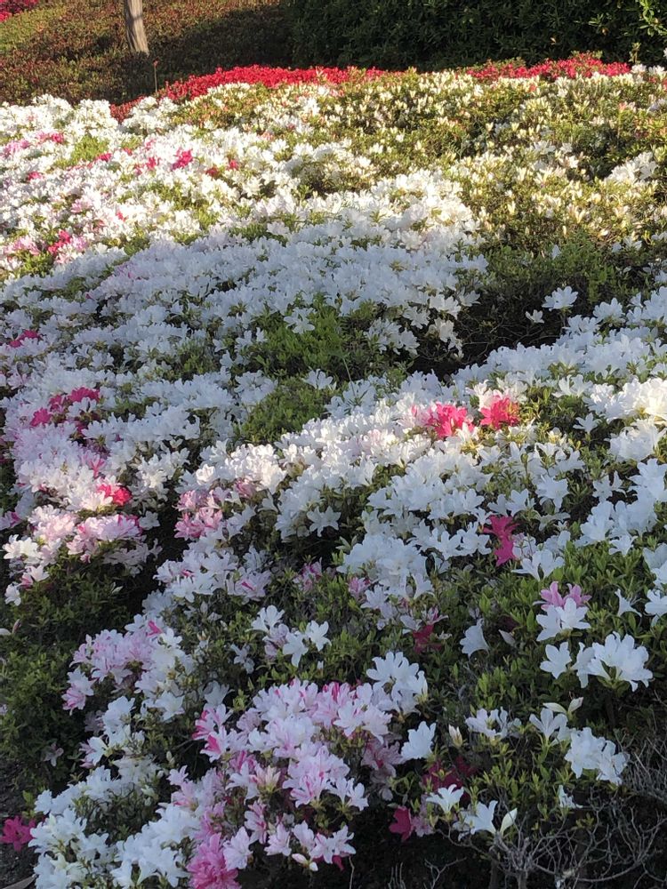 今日はお天気が良く、赤色、ピンク色、白色の「ツツジ」のお花が鮮やかです。📸♥️🌸🤍🌿😊😄🌞✌️