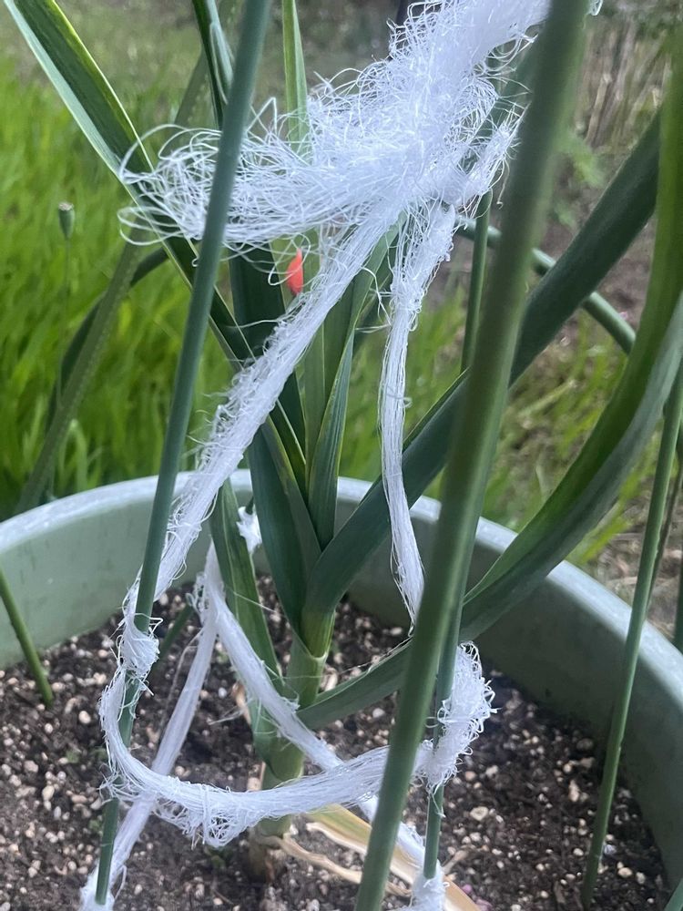 4つ前に投稿したニンニクは、春になって一気に伸びてきました。