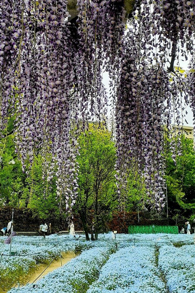 植物園の満開の藤とネモフィラさんが綺麗ですね💜💙