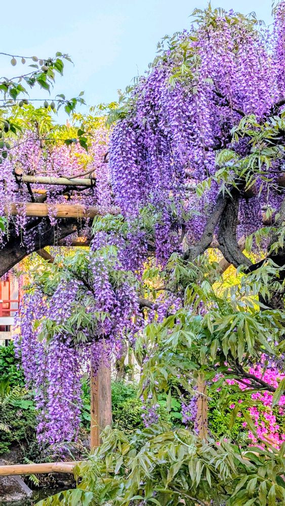 藤のお花が立派でたくさん咲いていますね。スカイツリーとのコラボもいいですね。