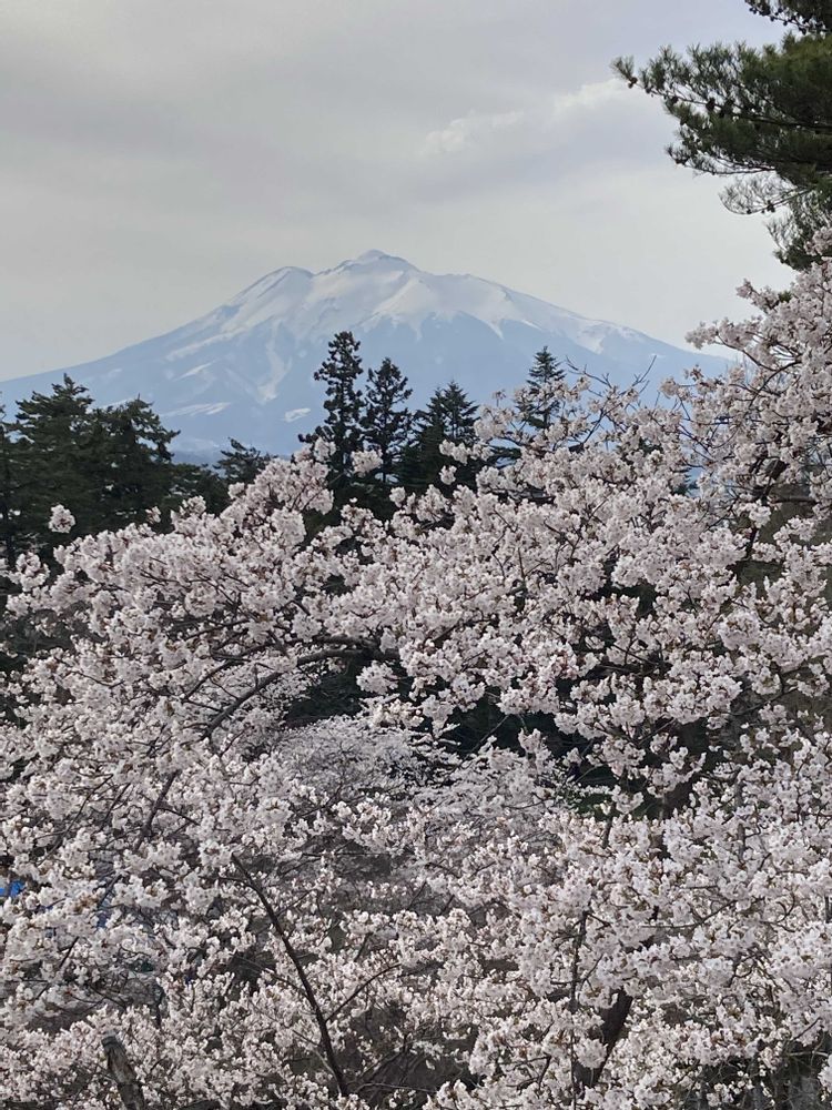 染井吉野、弘前城、岩木山をバックに映えばえですね