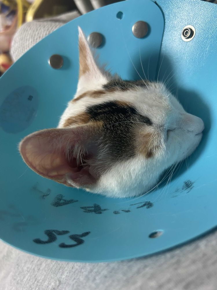 クロは日帰り。マロンは女の子だから一泊だったよ。傷を舐めないように服を作って着せてた。😅