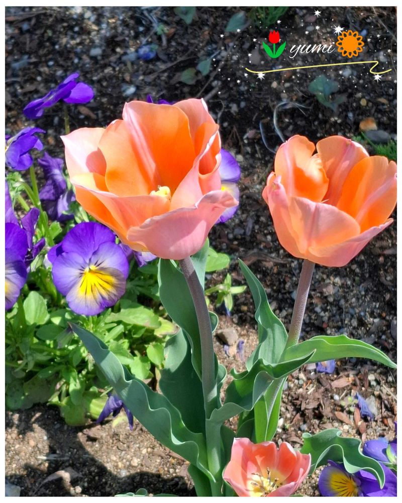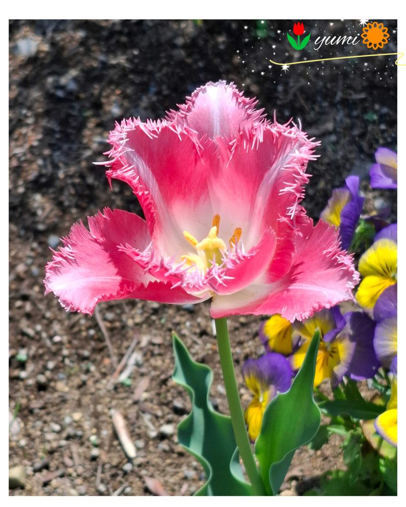 パンビオとチューリップ🌷お似合いです😆⤴💓イィ𝚗𝚎ෆ⃛⑅𖡼𖤣𖥧⚮̈ʾʾ