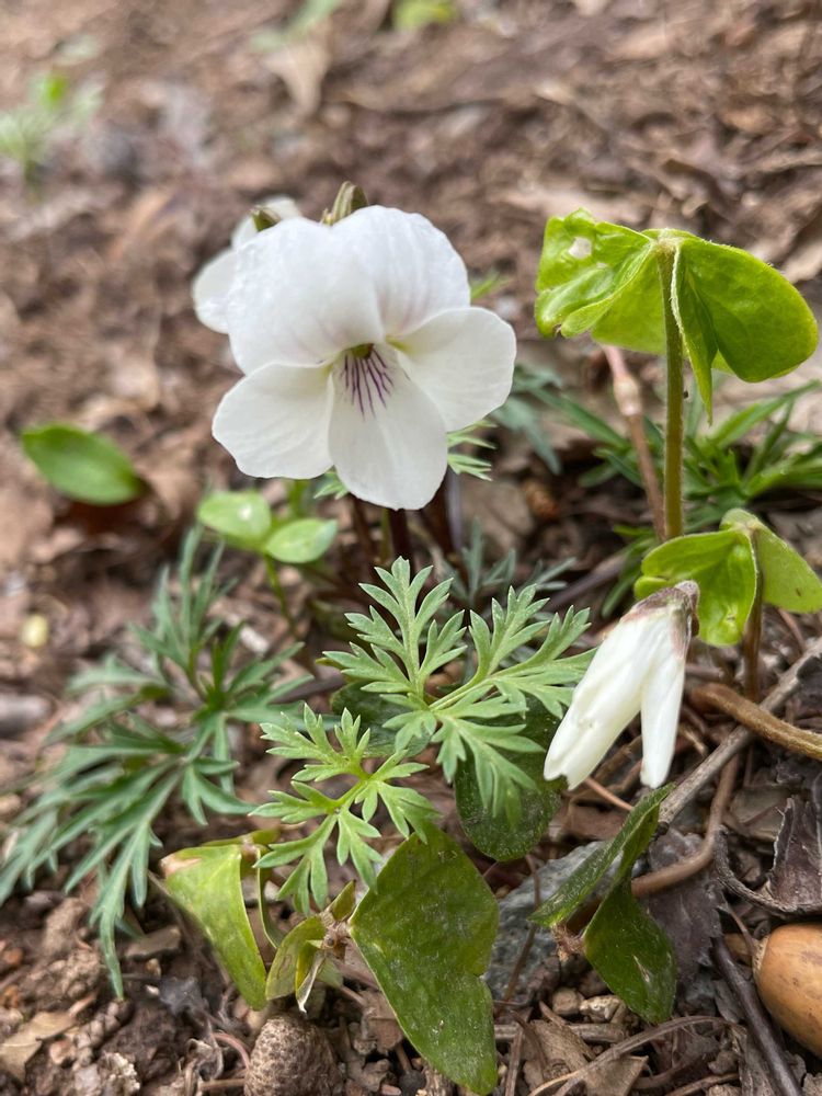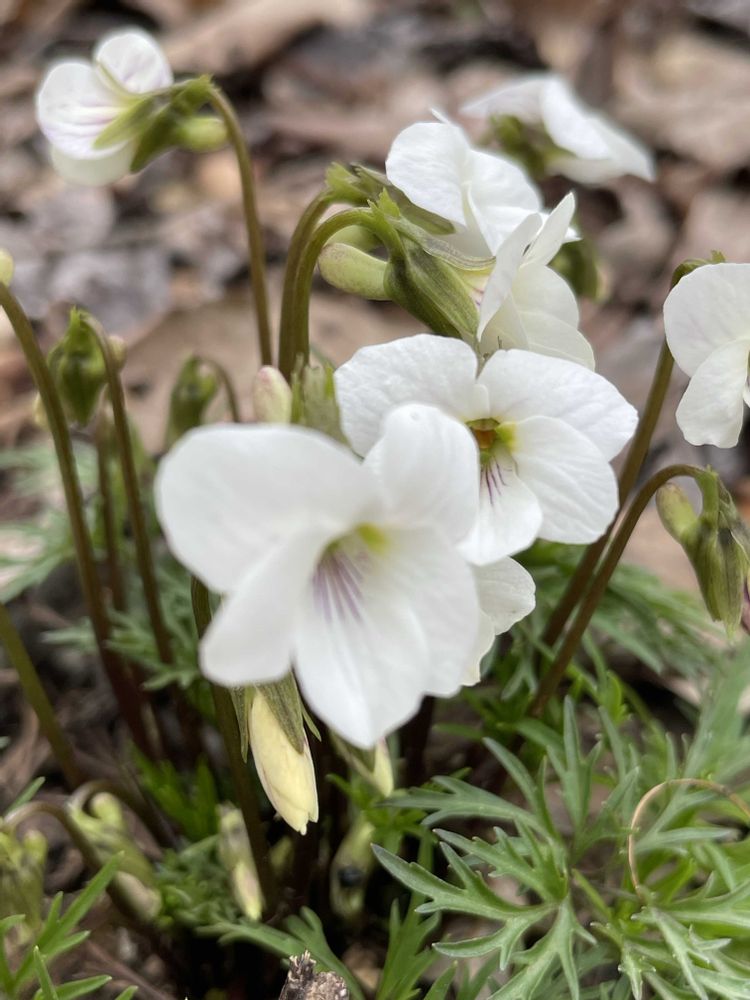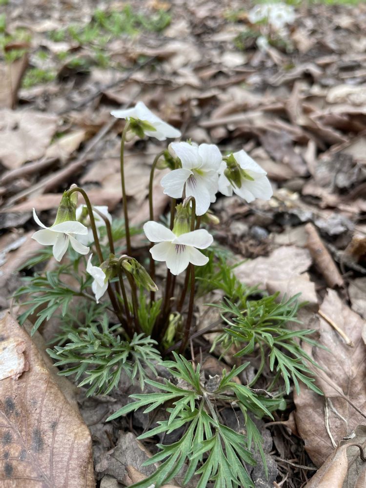 先日高尾山へ登り、かわいい植物達に出会いましたが、帰宅してから高尾山のパンフレットを読んでエイザンスミレのことを知りました😅