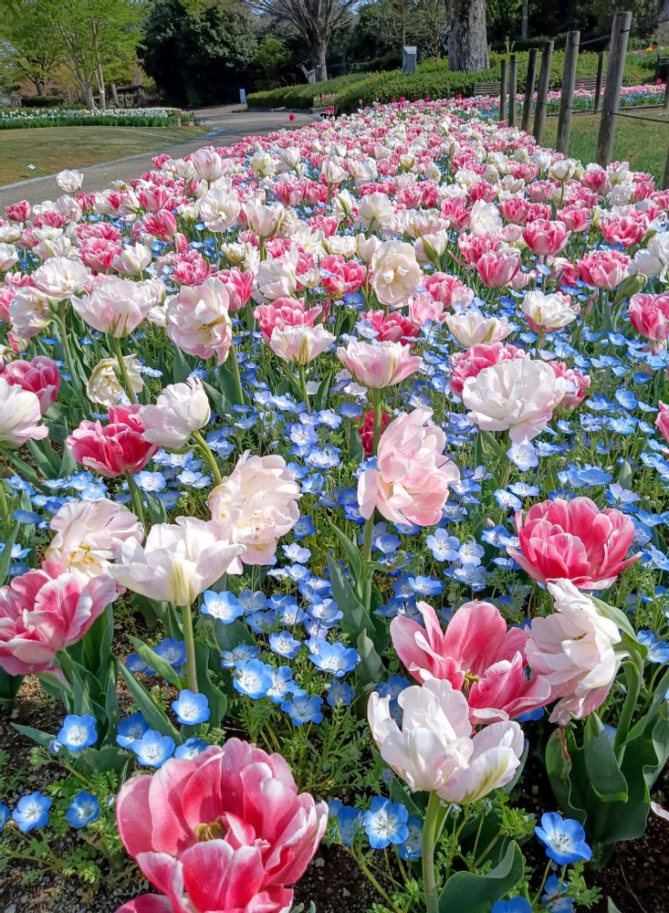 ピンクの🌷🌷🌷とブルーのネモフィラさん綺麗なコラボですね。