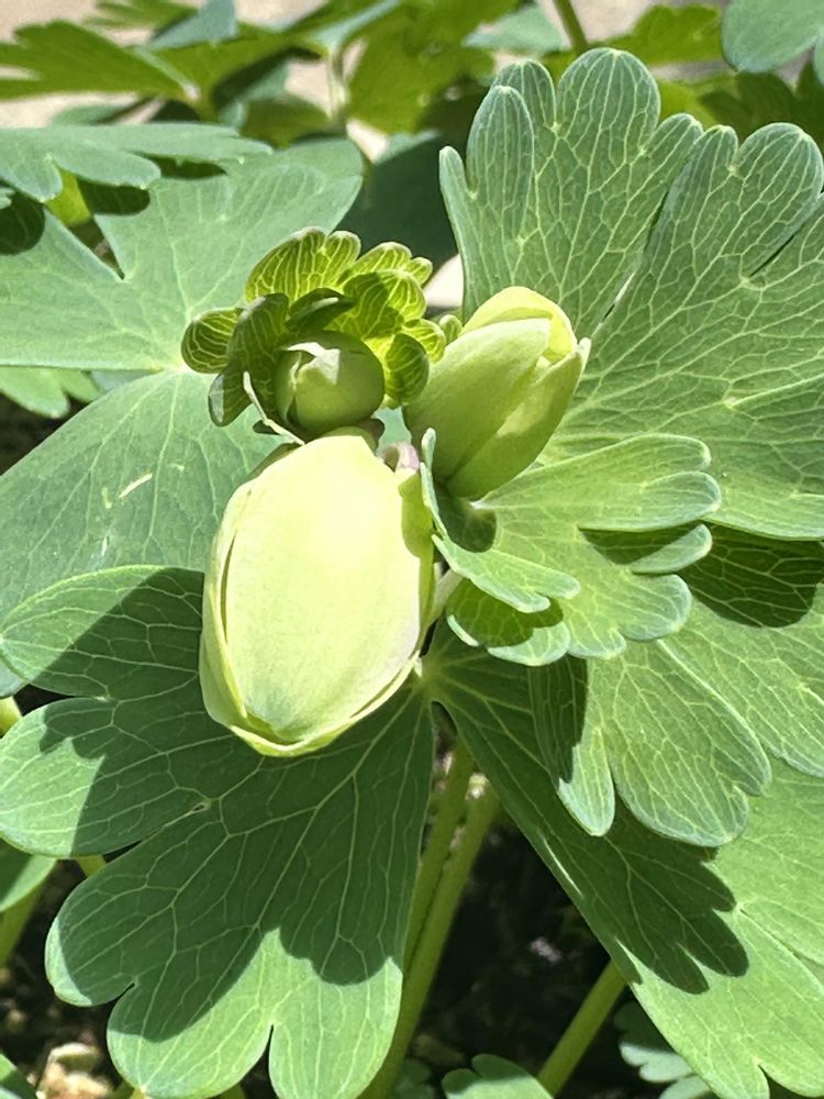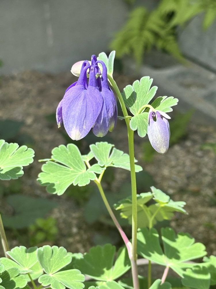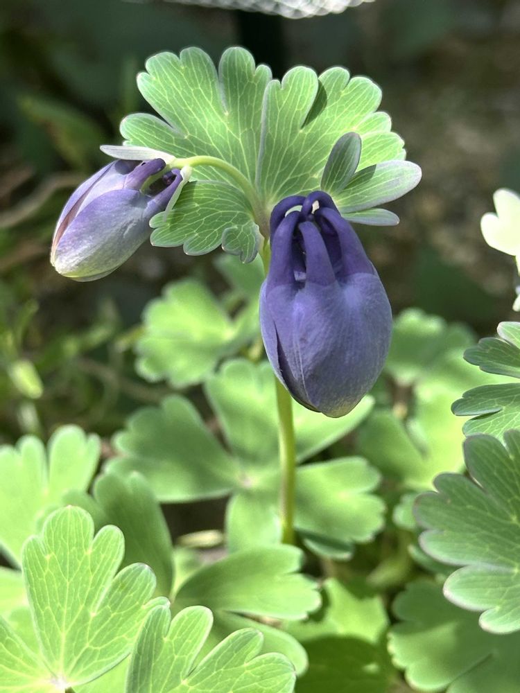 小さな我が家の庭のあちらこちらで冬越ししたオダマキが咲き出しました♡