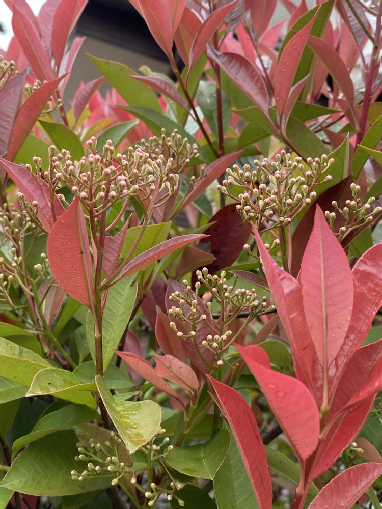 カナメモチの他に庭木のクロガネモチやサザンカ、マサキなどがあるので、毎日お掃除で明け暮れです。