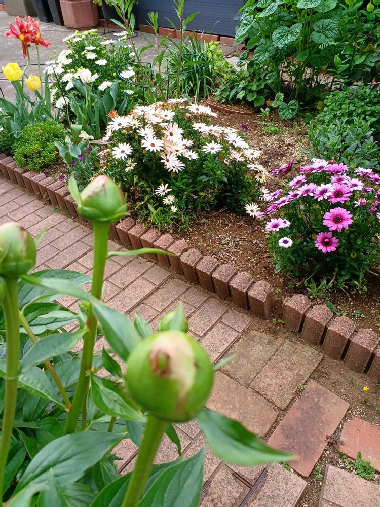 小さな庭,ミニ胡蝶蘭,芍薬の蕾の投稿画像