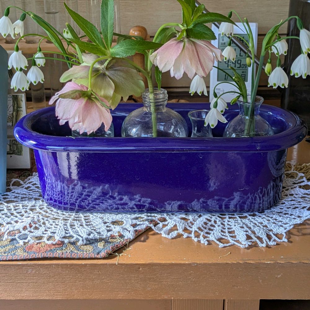 庭の花スノーフレークとクリスマスローズを飾りました🧓😍