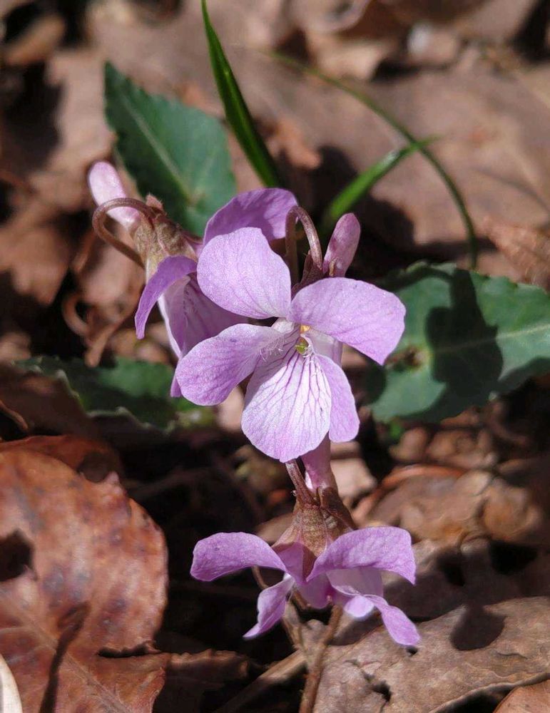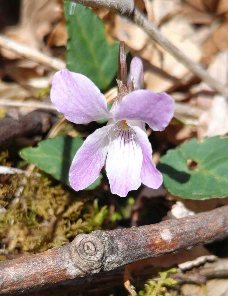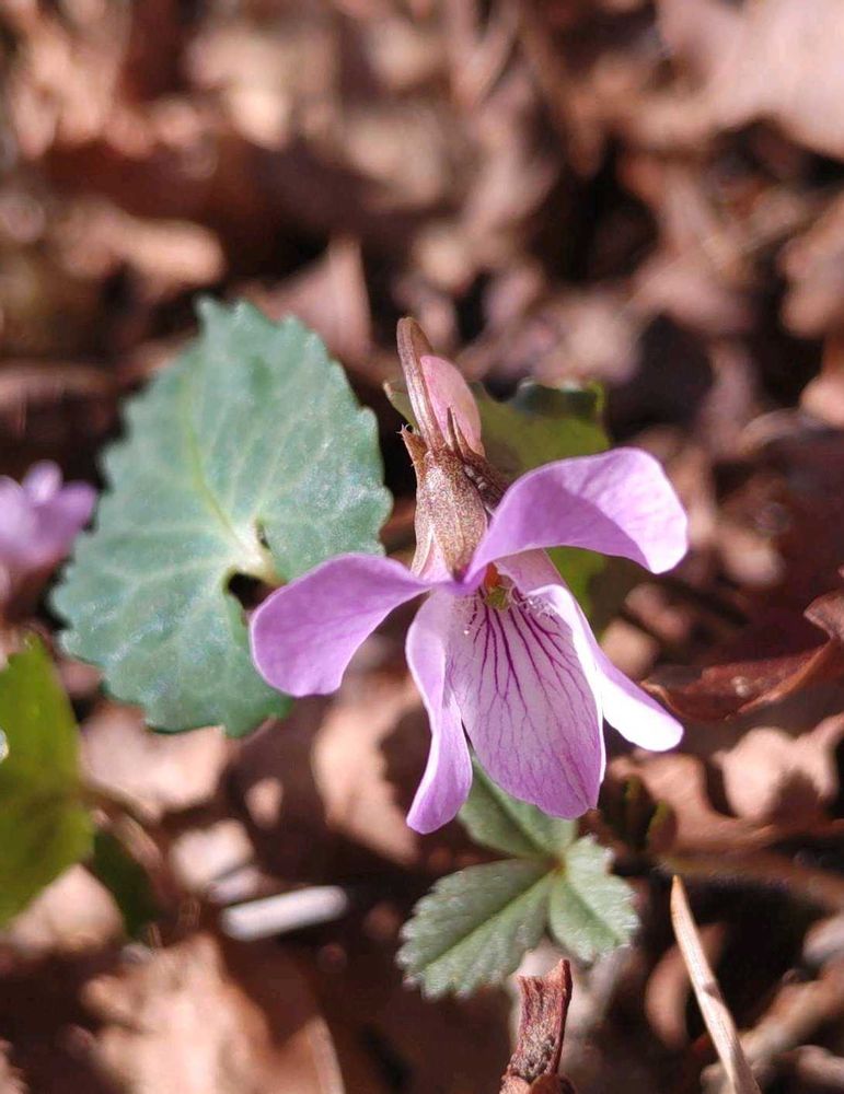 エイザンスミレを探しに行って見つけられず、厚い落ち葉の中から顔を出す、小さな可愛いスミレを見つけました✨🩷🤍🌱