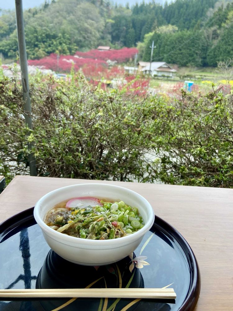 山菜天ぷらうどん食べて帰りました。美味しかったよ〜🍑