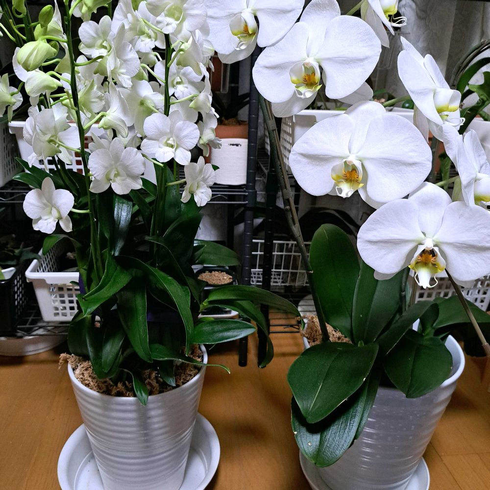 右の胡蝶蘭は3月に連れて帰って来た大輪胡蝶蘭~🤍🤍