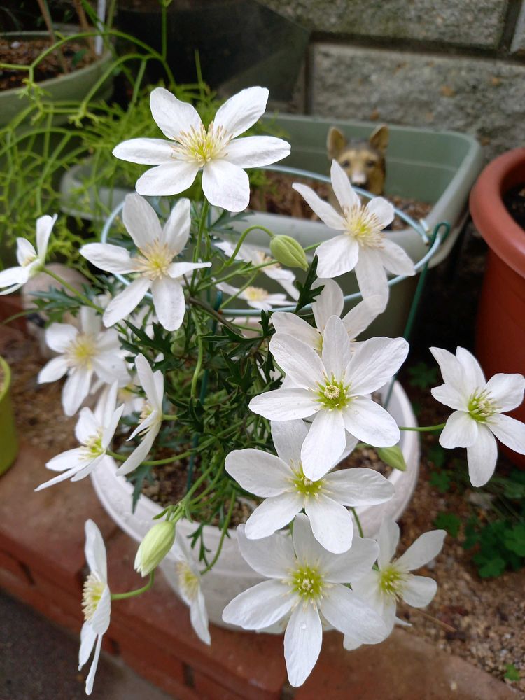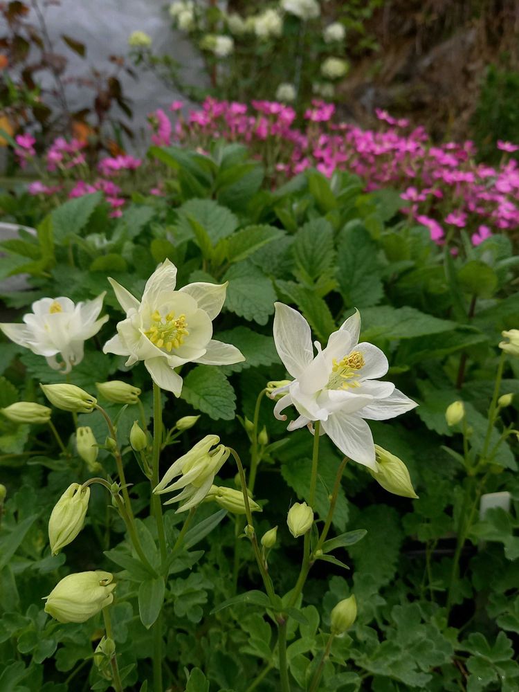 白花オダマキ冬越しやこぼれ種でどんどん増えています🤍