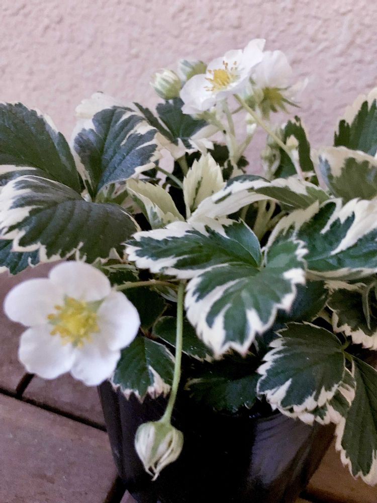 この斑入りイチゴ🍓ちゃんと実がなるようにお世話頑張りたいです♡🌿✨🌿